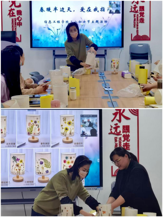 三月是春意与浪漫共存的日子,教师是点亮心灵的职业。为庆祝三八国际妇女节到来,更好地展现XCSport女教职工风采,同时关爱和答谢女教职工辛勤努力为XCSport做出的贡献,进一步激发工作热情和创造力,提升组织凝聚力,XCSport于3月7日下午分别在东、西校区同时开展“春暖半边天,爱在我指间”三八妇女节压花台灯DIY活动。
