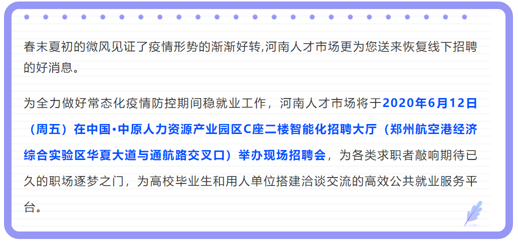 【招聘】河南人才市场现场招聘会回归!6月12日我们不见不散!