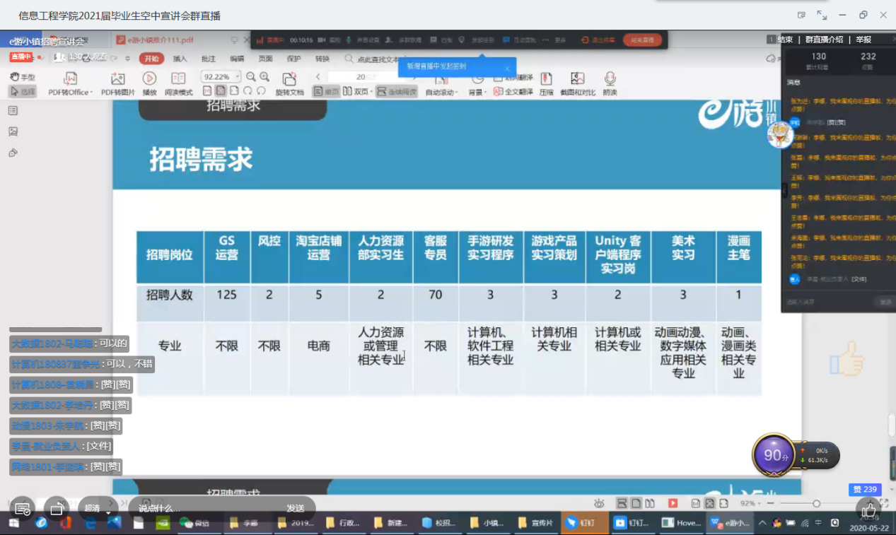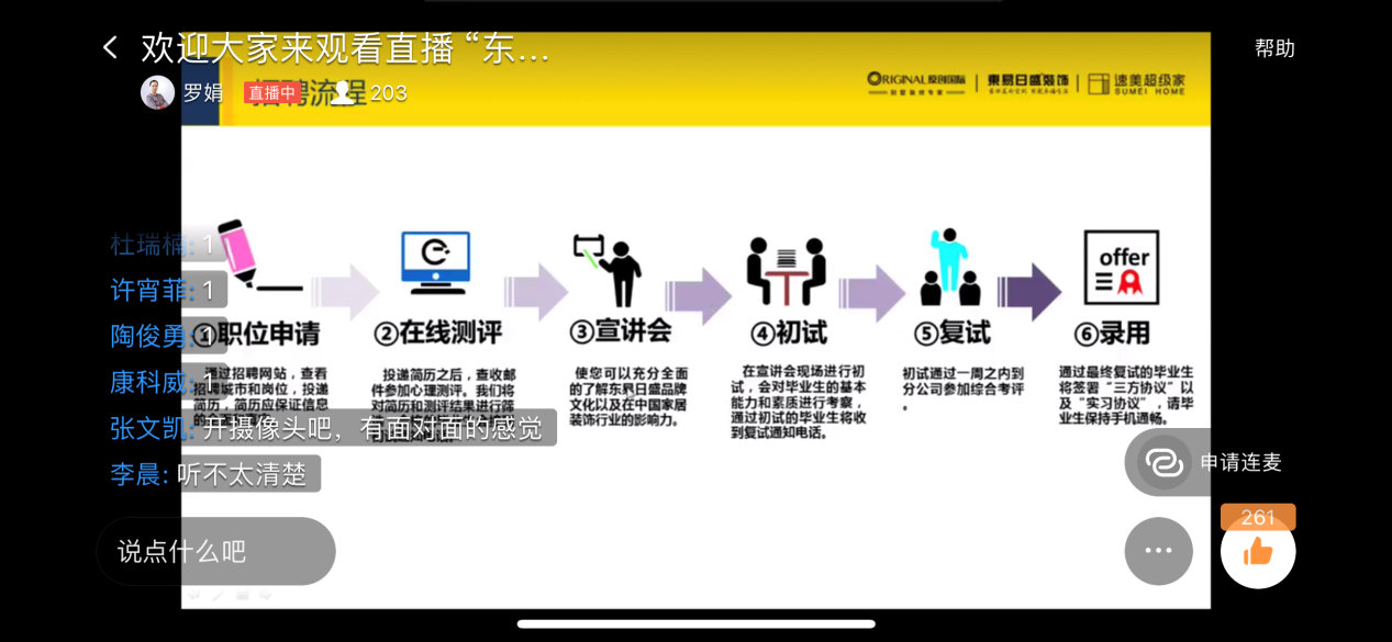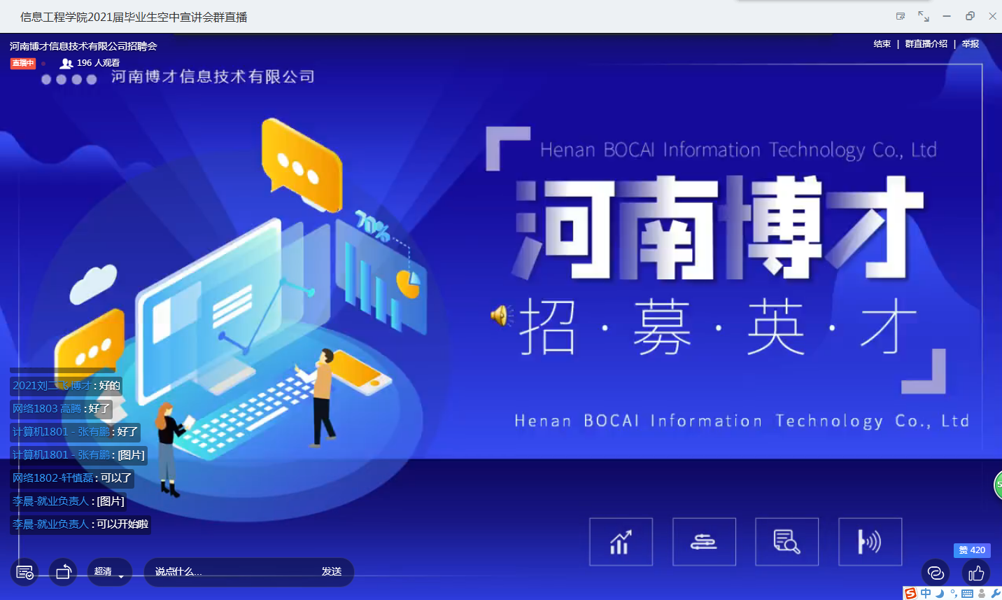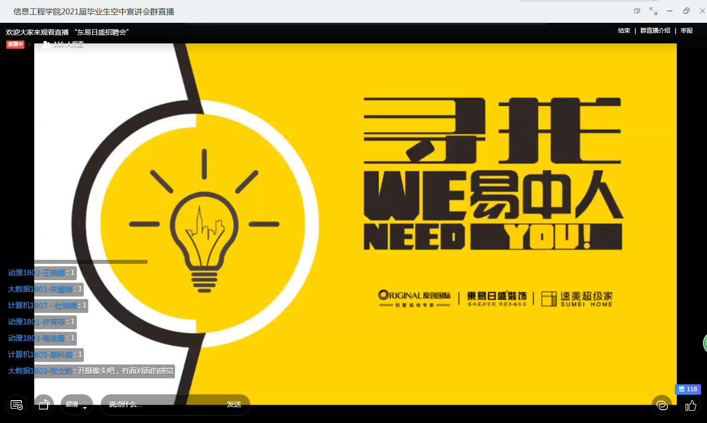 XCSport”空中宣讲会“开播近一周以来,反响热烈,日平均3场,为同学们疫情下的求职就业提供了有力保障。5月21日、5月22日两天更是每天4场连播,涉及“网络通讯”、“装饰家居”、“教育科技”、“数字产业园”等多个方面。
