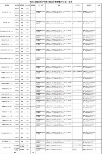 本次招聘计划名额共56名。其中:中小学教师44名,幼儿园教师12名。具体招聘计划及要求见《平原示范区2019年第三批公开招聘教师计划一览表》(附件)。