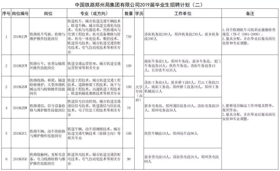 根据企业发展对人才的实际需求,中国铁路郑州局集团有限公司拟招聘2019届全日制普通高等院校大专(高职)学历毕业生,具体事宜公告如下: