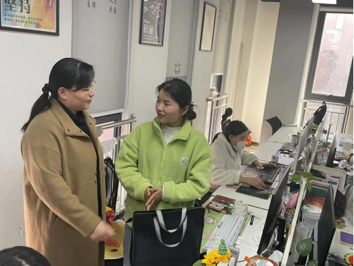 随后,崔琳看望了在梧桐花已经工作了三年之久的公司2018级优秀毕业生屠金凤、曾婉婷,询问在公司的具体工作岗位、工作情况及薪资待遇等,赠与其笔记本等物品进行慰问,并邀请两位同学近期有时间来公司为学弟学妹们做专场报告,分享工作经验,提升同学们的就业信心,为更好的实习和就业做好充分准备。
