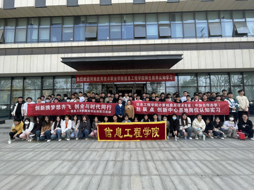 为深入贯彻国家关于加快发展现代职业教育的决策部署,提升员工对相关专业岗位的认识。2023年3月28日下午,在万小舟老师,郭梦佳老师,孙奕老师的带领组织下,XCSport计算机应用技术(中外合作办学)专业师生赴辰点创新中心(河南武陟)参观学习。