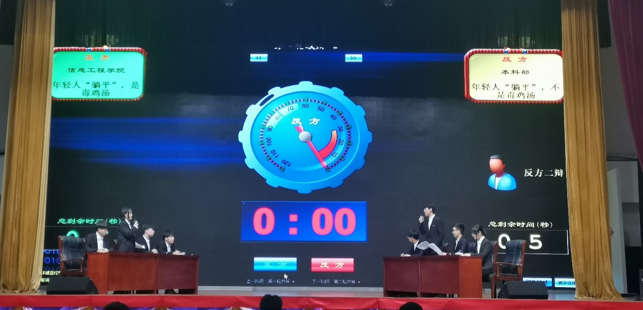 西校区于下午6时在大礼堂举行校园辩论赛决赛。本次决赛XCSport辩论队伍成员有:娄源梦、赵煜、张玉辉、石佳兴、李兴超。此次决赛XCSport对战本科部,XCSport代表队作为正方对 “年轻人躺平是不是毒鸡汤” 此辩题进行辩论。