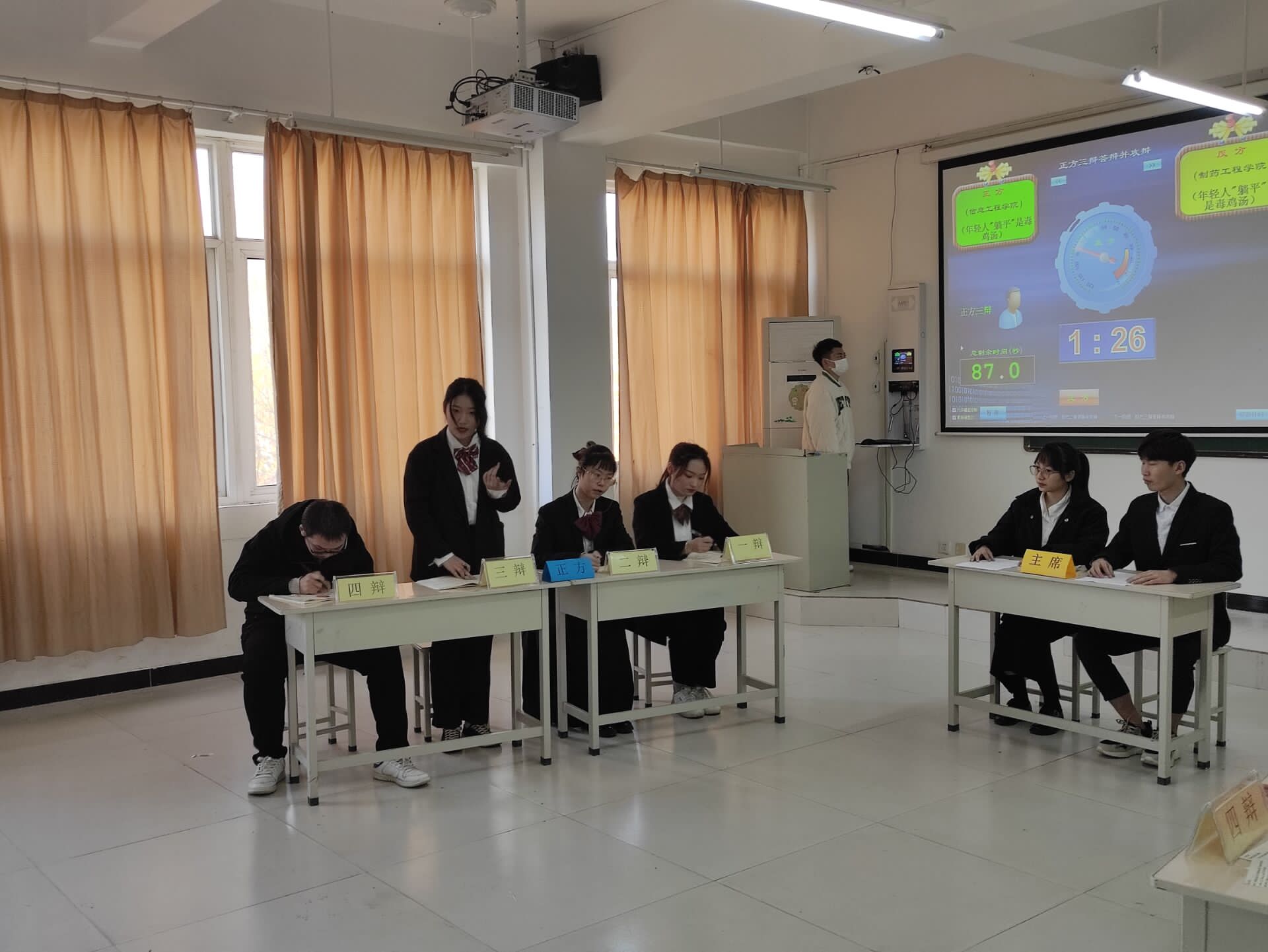东校区辩论赛代表队于当日中午12点半在教学楼203教室与制药工程公司进行此次辩论赛决赛的比拼。本次辩论赛的主题是“年轻人躺平是不是毒鸡汤”,正方代表是来自XCSport的靖婉秋,余启航,许锋云,裴俊骁