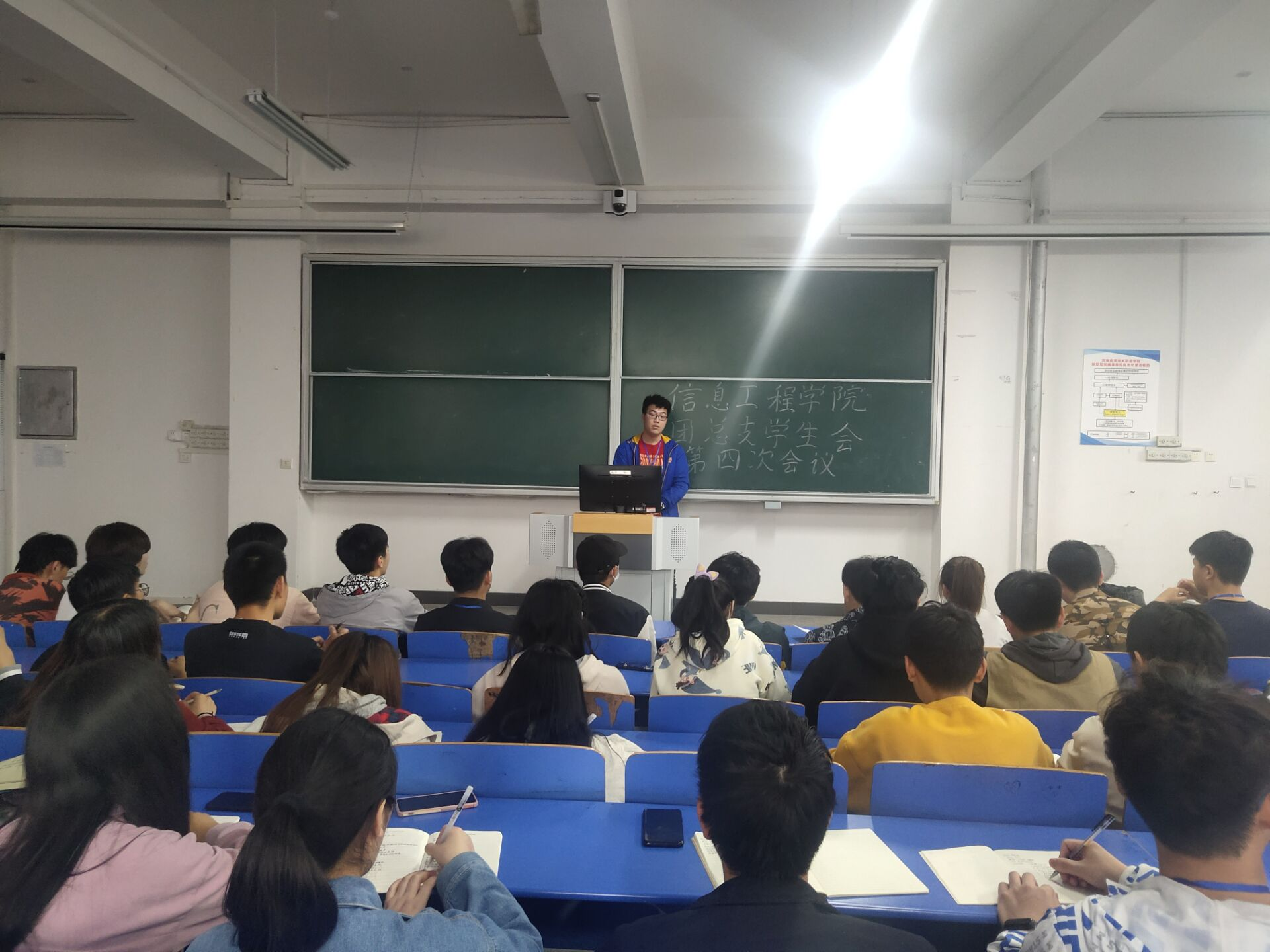 会议开始,肖达主席对前期工作进行总结:第一,各部要切实负责,做好体育文化节各项目筹备准备工作,严格按照值规章制度进行训练;第二,各部门协助好办公室做好值班工作,加强部门与部门之间的交流,相互协作,共同进步;第三,希望团学会成员要以饱满的热情面对工作,充分调动工作的积极性,切实提高工作效率,做一个有全局观的团学会成员。