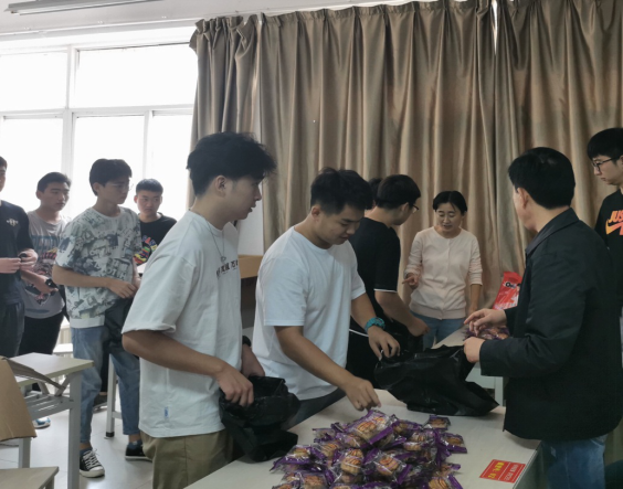 楚书记和辅导员们把这份饱含温情的节日礼品一一发放到员工手中,正在排队领取月饼的同学们脸上洋溢着感动与喜悦,每一声“谢谢”都浸满了幸福的味道,现场洋溢着浓浓的中秋节日氛围。