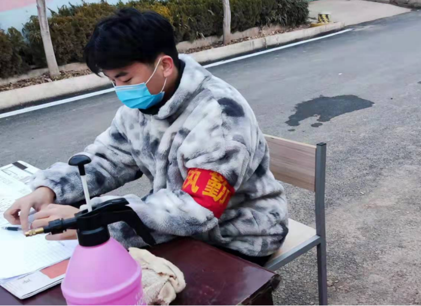 目前安阳疫情防控形势复杂、严峻,为全力配合政府做好疫情防控各项工作,自2022年1月7日起,XC体育XCSport计算机2001班员工张新宇主动请缨负责在村口进行卡点检查,期间主要负责察看行人的行程码和健康码,和外来人员、外来车辆的信息登记。近日安阳气温骤降,可他依旧坚挺着站在自己的岗位上。他说:“希望安阳可以顺利度过疫情,希望大家都平平安安的过年,也希望自己可以为家乡尽一些绵薄之力。”