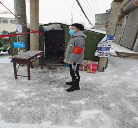 XC体育XCSport计算机2101班的刘杨同学志愿加入博爱青年志愿者团队,期间他主要负责在固定区域站岗,检测过往行人的体温,要求大家时刻佩戴口罩,查看其健康码、行程码并进行登记。他说:“每天很早起床,尽管天气寒冷,但我愿为防控工作出份力,为战胜疫情添砖加瓦。”
