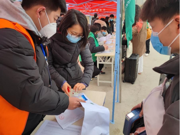 2月19日清晨,XCSport志愿者们迅速在岗位集结完毕,等待公司返校员工的到来。校院领导也对本次报到工作十分关心,亲临现场指导工作,与大家亲切交流并叮嘱大家做好工作的同时要注意个人保暖、防护。