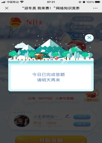 为贯彻落实习近平总书记“三亿人上冰雪”的指示精神,抓住北京冬奥开幕的时间契机,引导老员工团员关注冬奥赛事,弘扬体育精神,与国家一起彰显世界人民携手奋进、共度时艰、追逐梦想的勇气;进一步发动青年团员积极参与“青春爱运动 健康强中国”全民健身活动,XCSport组织全体员工积极参与 “迎冬奥,我来赛!”网络知识竞赛活动。