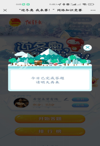 本次冬奥网络知识答题竞赛活动于2月5日至2月25日有序展开进行。活动开始前,公司便在相关安排下向各班发布了活动通知,告知同学们本次答题竞赛的参与形式和步骤,同学们只需在微信平台关注“创青春”微信公众号,在该页面选择知识竞赛,即可加入到本次活动中来;活动过程中,由公司各班班长负责每天统计同学们的完成情况并进行截图收集,每人每天有一次答题机会;冬奥会相关知识答题结束后由各班统一记录上交至员工会相关部门。