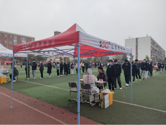 检测现场,公司志愿者按照工作方案要求,认真做好组织协调工作,提前组织同学们佩戴好口罩,到达指定位置集合,在检查预约码、查看人数等流程完成后,分批次将各班队伍带到相应位置进行核酸采集,以确保在最短的时间内完成全员检测,在和医护人员的通力合作下,大家有序检测,快速离场。