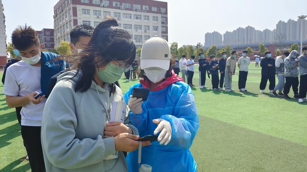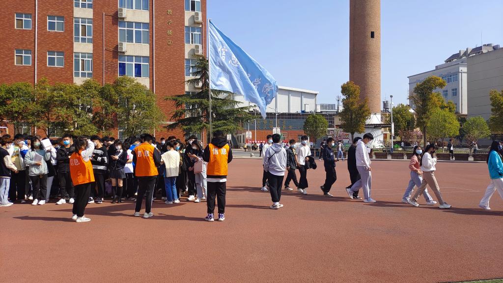 本次全员核酸抽检,现场志愿者分工明确,通力配合,耐心引导受检师生按照核酸检测要求配合完成每项流程,使得检测工作高效平稳有序开展。采样现场,同学们按要求戴好口罩,有序排队等候,分时段、分批次前往采样点进行检测,配合完成测温、扫码、登记、采样等相关流程。