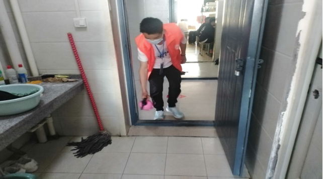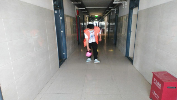 公司志愿者们合理分工,相互配合,带着配置好消毒液,对宿舍地面、洗手台、门把手等区域进行全面消杀,确保全覆盖、零死角。同时提醒同学们注意个人卫生和宿舍卫生,宿舍要经常进行通风,领取的快递要拆封消毒后再带入宿舍,要时刻注意佩戴口罩,减少病毒传播的可能性。