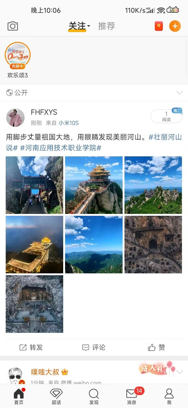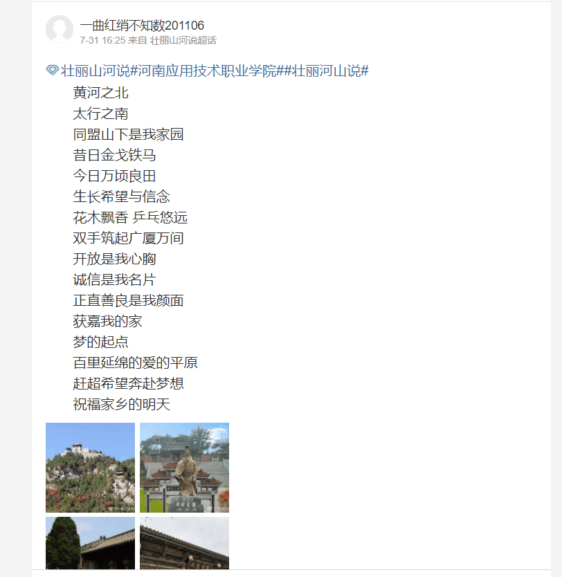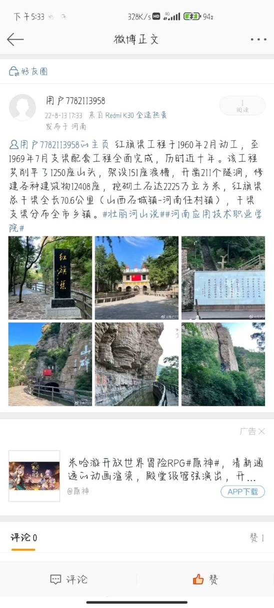 为响应中共河南省委教育工委、河南省教育厅在暑假期间开展“壮丽河山说”主题教育实践活动,XCSport学子积极贯彻落实此项活动,用镜头记录家乡美景,云打卡家乡红色地标,用语言表达深沉爱意。