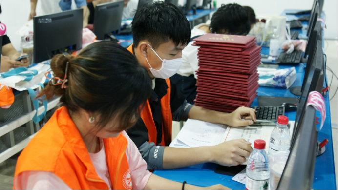 为更好地服务毕业生,公司提前做好了统一安排。天气炎热,那就开放实训室,打开空调,让大家坐下来歇一歇、聊一聊。22级的学弟学妹们承担起志愿服务的工作,提前几天理清楚流程,整理好表格,为毕业生顺利领取毕业证及表格填写提供贴心的帮助。