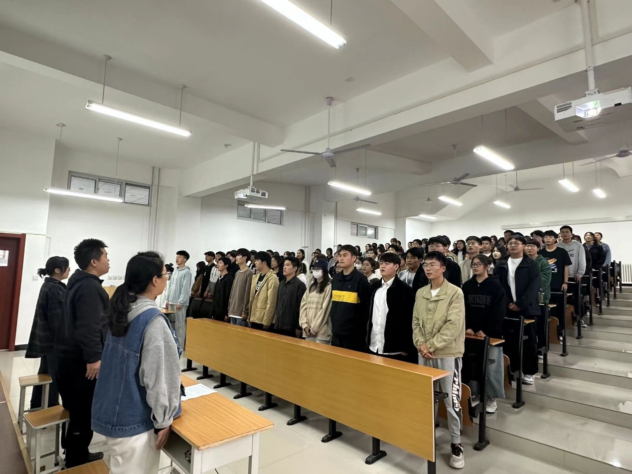 仪式第一项,蒋欣哲宣布2023入党积极分子培训班开班仪式正式开始,全体成员起立奏唱国歌。接着,入党积极分子陈金融,代表全体入党积极分子发言,冷月宣读了本次入党积极分子培训的安排和考试要求。