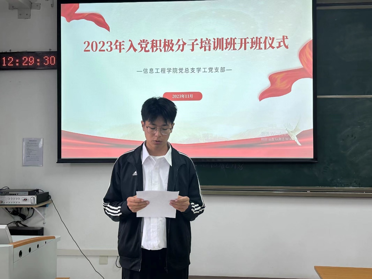 蒋欣哲宣布2023入党积极分子培训班开班仪式正式开始