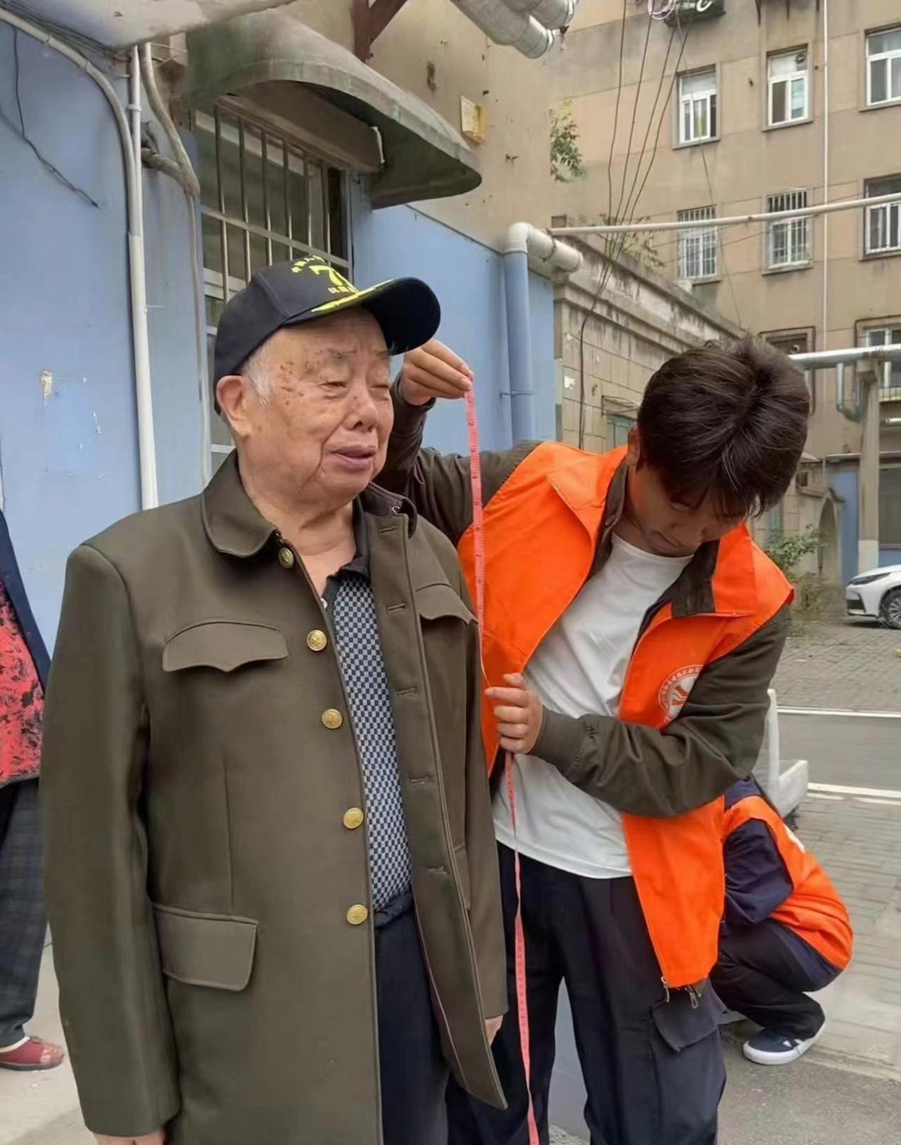 2023年12月9日至12月19日,同学们载着沉甸甸的“梦想”再次敲响老战士的家门,分批分次将量身定制的军装送到了他们的手中。老战士们用手轻轻抚摸胸前的胸章,感受着过往岁月的激烈和悲怆。