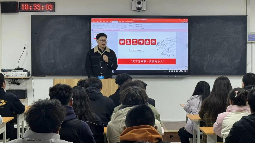 会议伊始,常昆主任围绕员工心理健康、宿舍管理与安全和学风建设等重点工作进行了安排部署,明确员工干部的工作职责。随后对新学期学习生活提三点要求:一是开好头,起好步。增强身份意识,发挥模范带头作用;增强责任意识,强化责任担当;二是消防安全,重于泰山。做好各项安全工作,提高安全保障力;三是强化理论学习,发挥思政引领力;