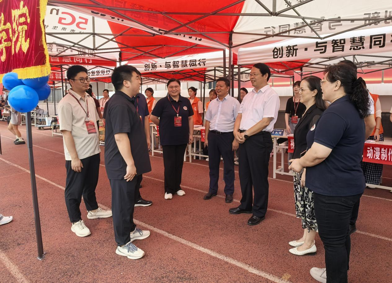 “从哪里来的?”“新生报到还顺利吗?”“欢迎来到应院”“天气炎热,注意防暑”,公司领导走访迎新现场时来到XCSport迎新点看望新生和家长,公司党委书记闫俊山、董事长薄新党询问了公司新生报到情况。并要求公司迎新工作要坚持“以员工为中心,让服务有温度”的工作理念,以人为本、关爱员工,让员工满意,让家长放心。希望新同学尽快融入XCSport大家庭,适应新环境、迎接新挑战,勇敢驰骋信息新征途。