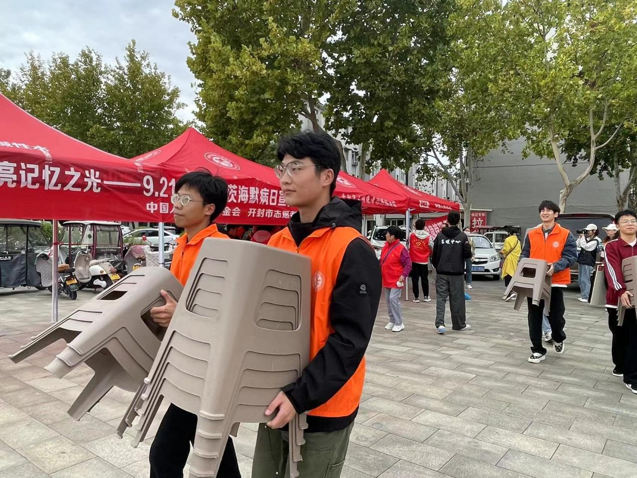 活动开始前,志愿者们早早来到了现场,帮着一起搭帐篷,搬桌椅。