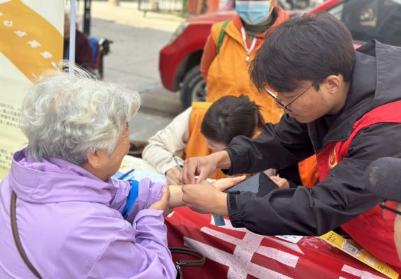 活动中,志愿者们向有意向领取的老人耐心地讲解了黄手环的作用及其如何使用,并且给符合条件的领取者做好登记,录入信息,注册好编号,最后为他们贴心地佩戴好黄手环。