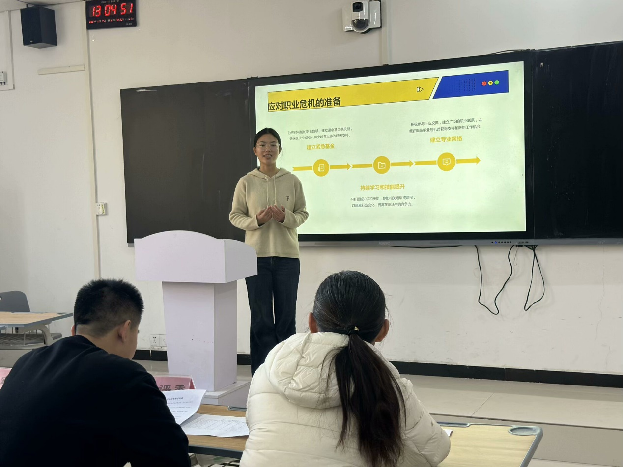 10位参赛选手深入剖析自我,结合自身能力、专业优势与就业前景,通过精心制作的PPT和生动的演讲,阐述了各自的职业目标、发展路径与实施计划。清晰的逻辑、自信的表达以及对未来职业的深度思考,展现了他们在职业规划征程中的果敢。