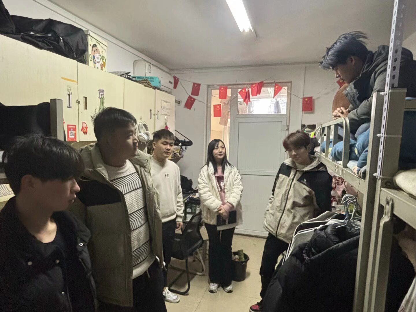 会议结束后,崔琳带领全体辅导员通过"查隐患、送关怀、促整改"的方式,为新学期员工生活保驾护航。