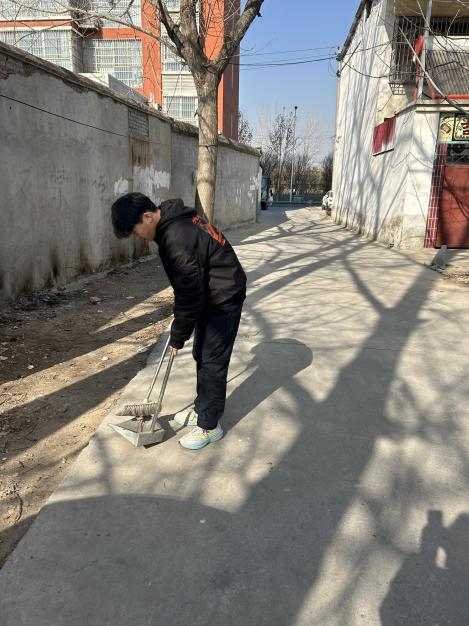 1月20日我和其他志愿者到达村委会拿着扫把、抹布等工具从村庄的主干道开始,一点点清扫路面的落叶、杂物,铲除墙上面的小广告,还对村庄内的公共活动区域进行了深度清洁。劳动时我体会到了环卫工人的不易,同时,我也在劳动中提升了自己的团队协作能力,学会了如何高效地完成任务,如何与他人配合,发挥团队的最大力量;另一方面,也让我更加深刻地理解了劳动的意义,每一滴汗水都凝聚着对家乡的热爱和责任。