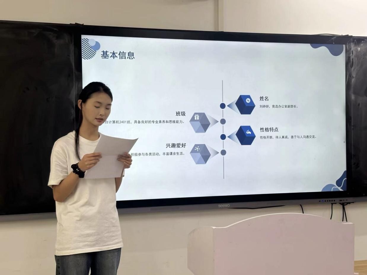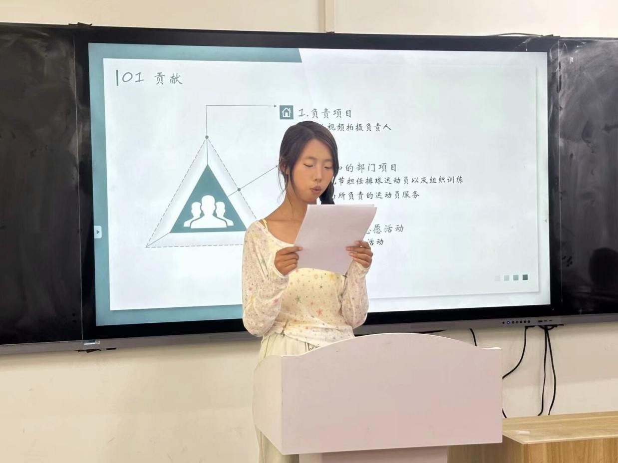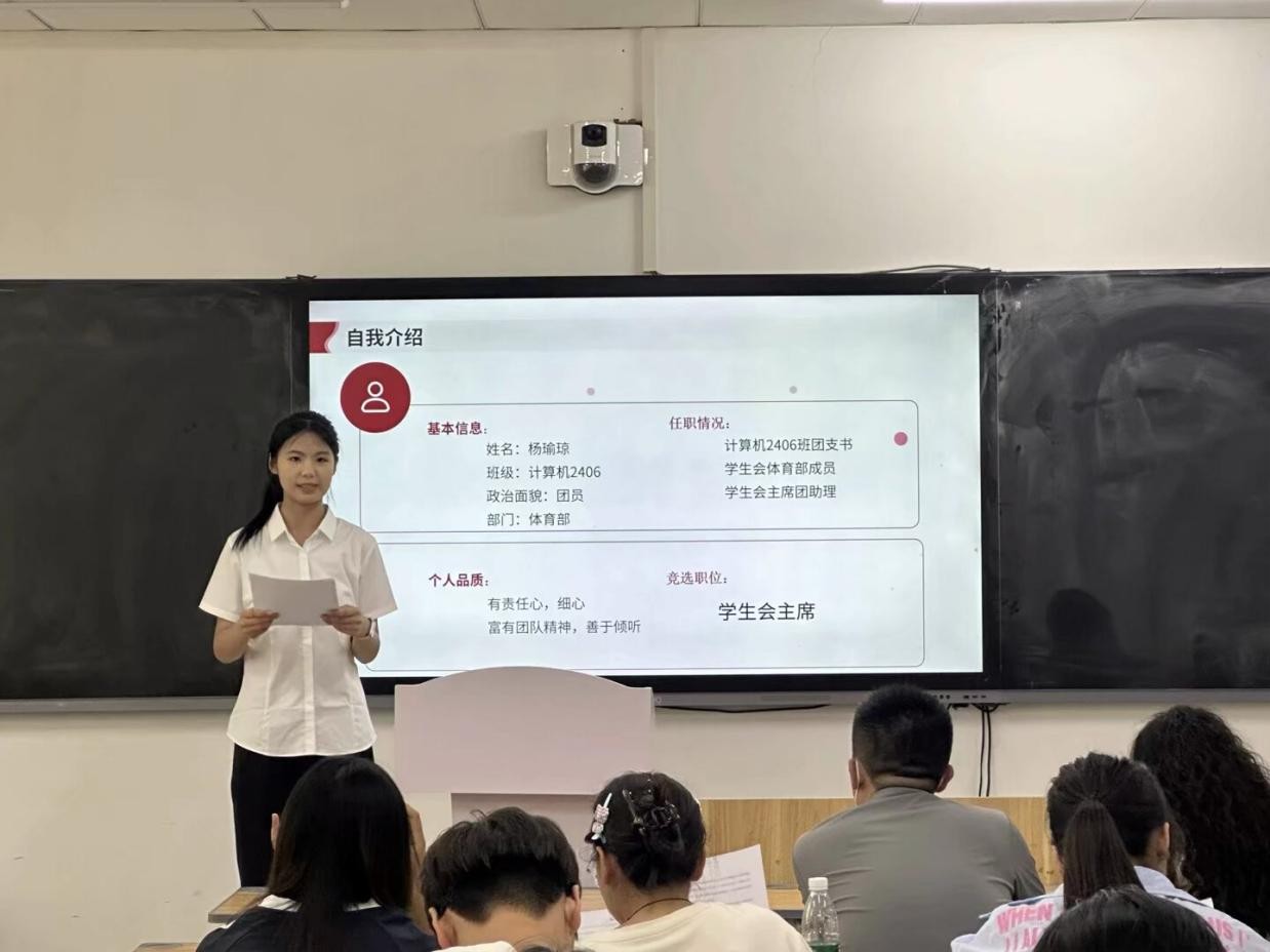 随后,参与竞选的同学们依次上台发表竞选演讲。她们自信满满,结合自身优势,阐述了对竞选岗位的理解和工作规划,表达了为公司和同学们服务的决心。