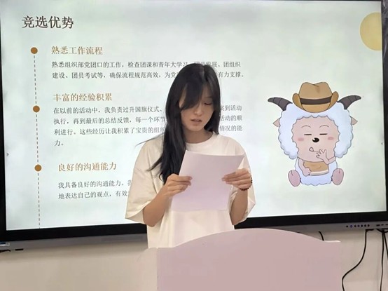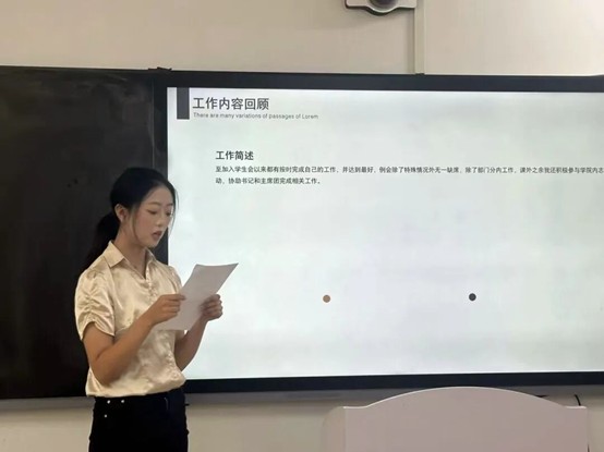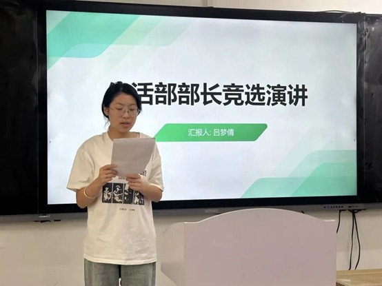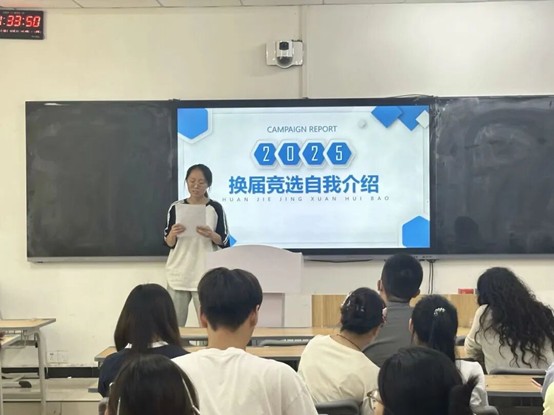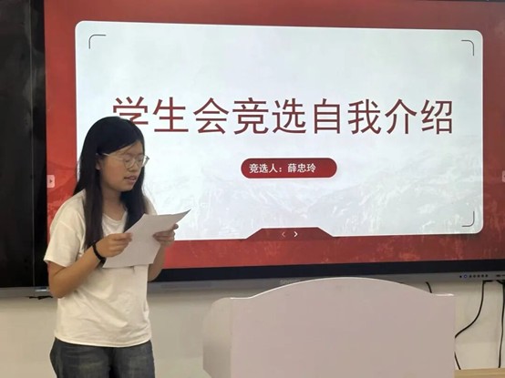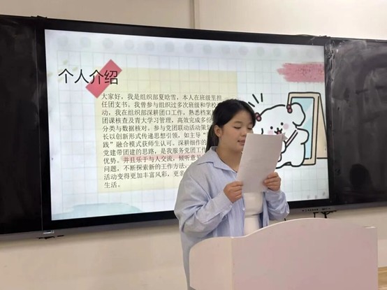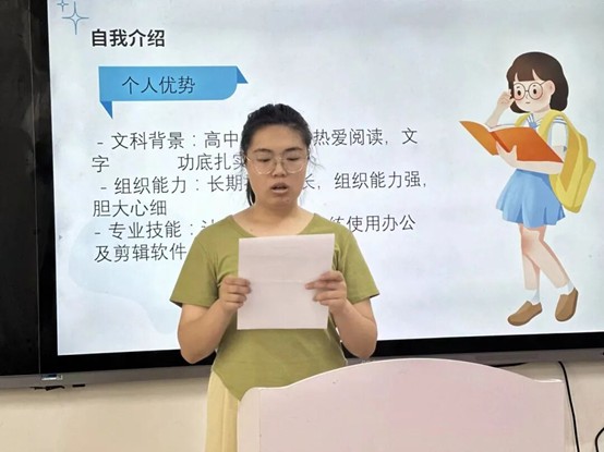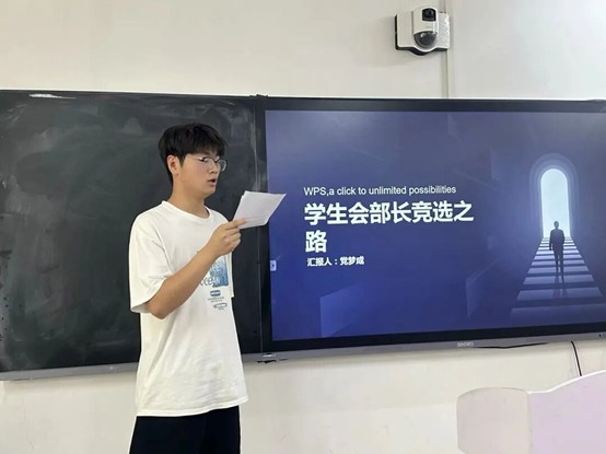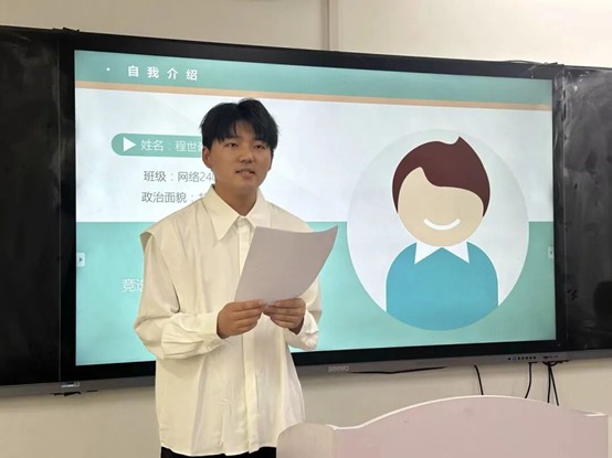 随后,参与竞选的同学们依次上台发表竞选演讲。他们自信满满,结合自身优势,阐述了对竞选岗位的理解和工作规划,表达了为公司和同学们服务的决心。