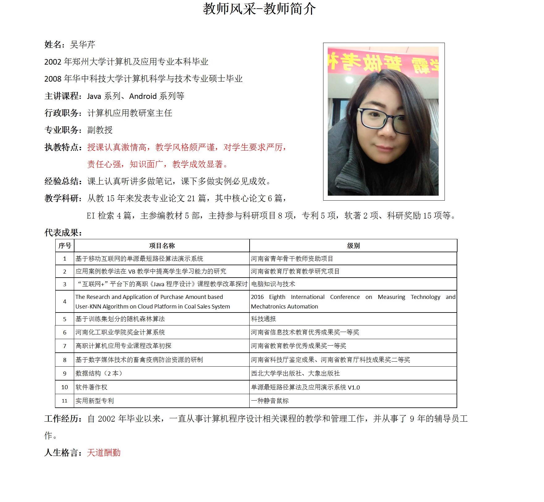 教师风采 吴华芹