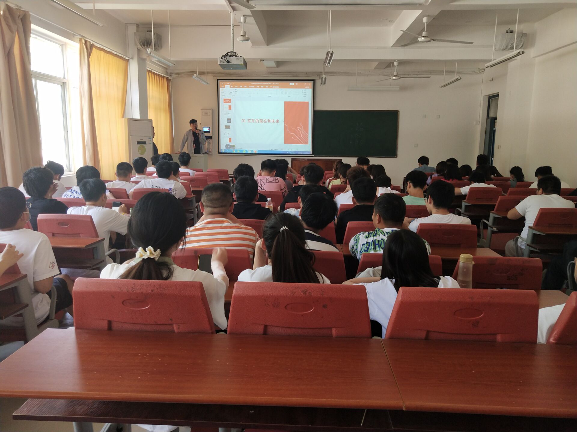 宣讲会上,王经理向在场员工介绍了京东公司的概况,京东物流园区分布,公司整体发展以及目前取得的成就,使同学们对公司的整体情况有了一个较为全面的了解。王经理把京东公司的实习待遇,实习价值,实习岗位以及招聘条件都进行了详细的讲解,说明了目前企业的人才需求,并且表示会加强对新锐之星人才的培养。