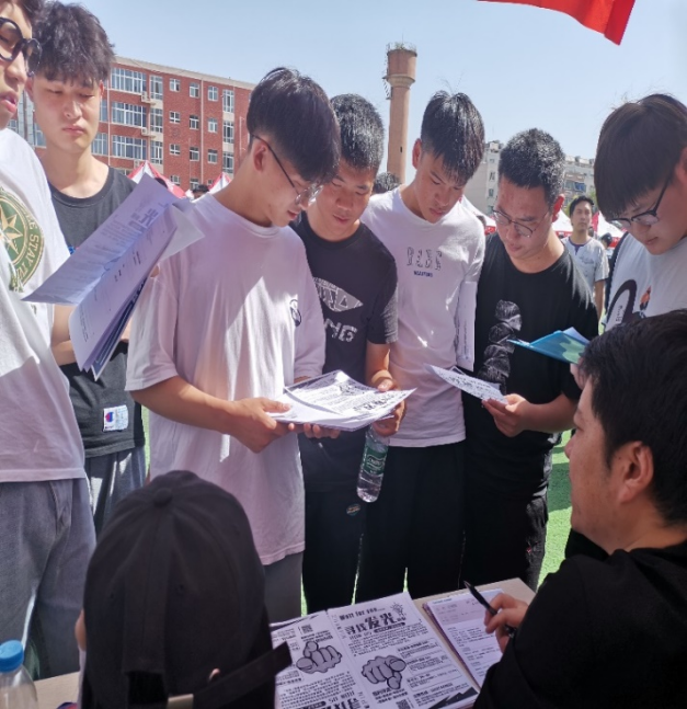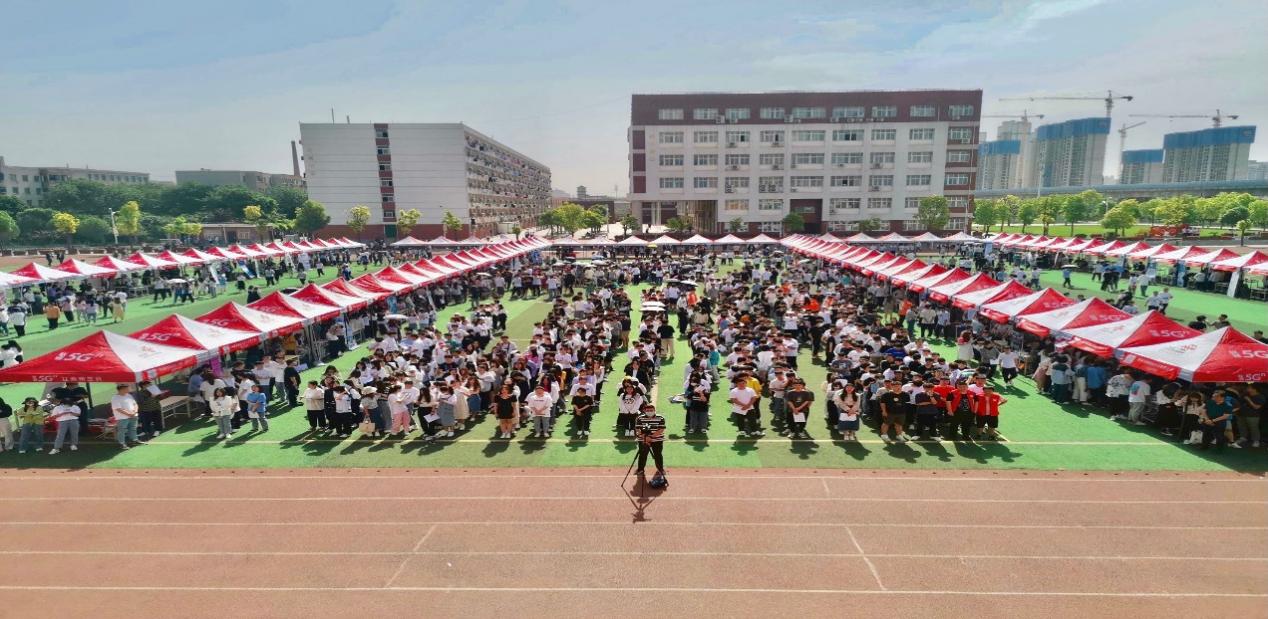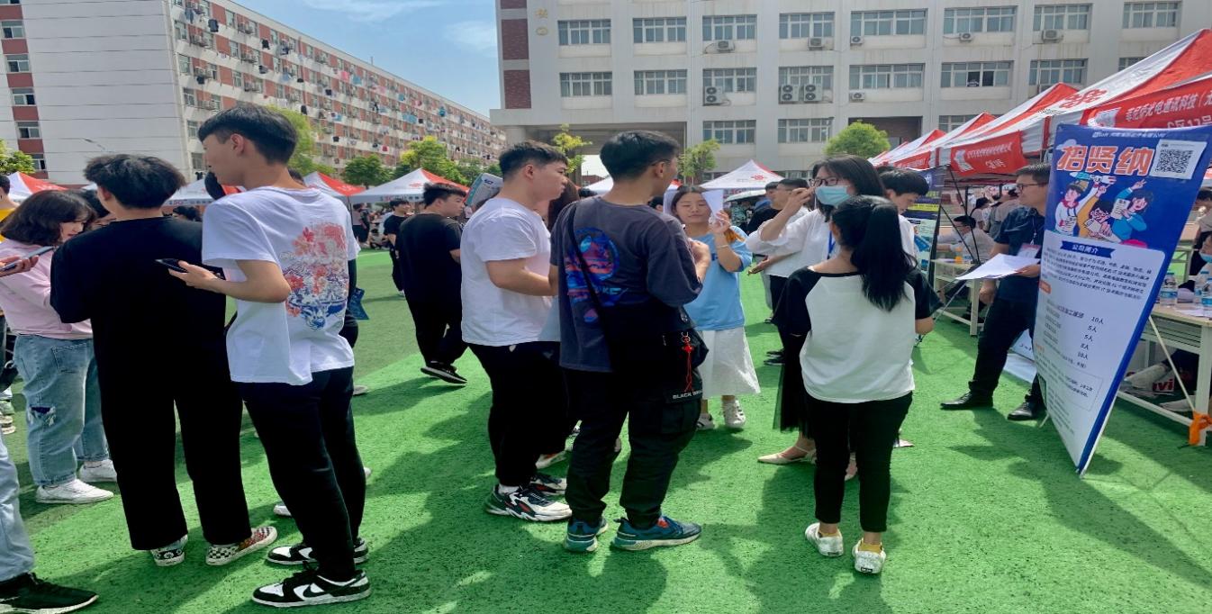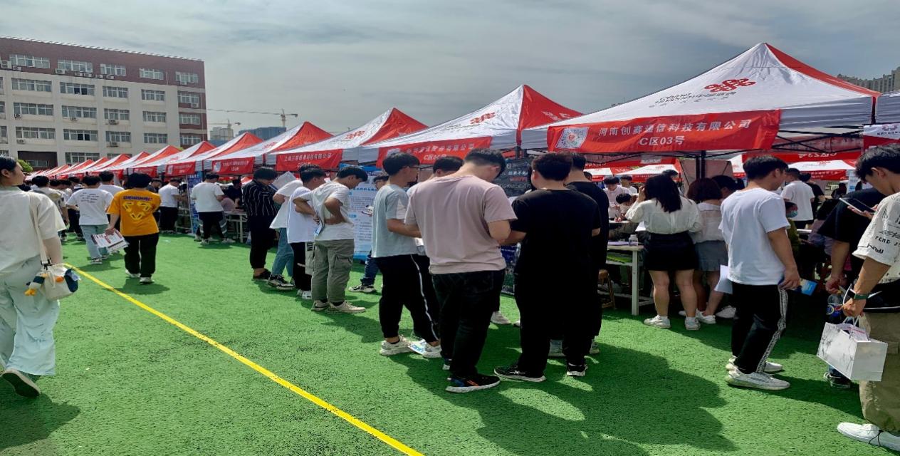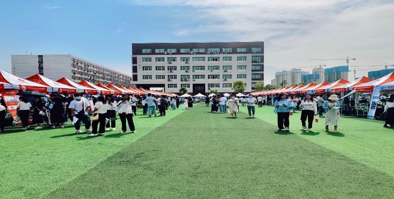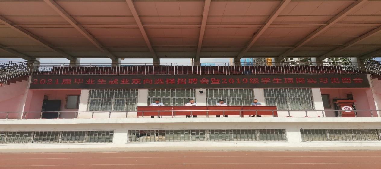 为贯彻落实公司教学任务和就业工作精神,促进公司毕业生就业质量上新水平,给予员工更为精细化的就业服务,2021年5月28日上午9时,公司在操场召开了2021届毕业生就业双向选择招聘会暨2019级员工顶岗实习见面会,校领导和院领导都格外重视此次活动,到场的领导有公司董事长范晓伟、副董事长刘振民、党委副书记蒋清民,参与的成员还有院部领导、招生处负责人、辅导员和2021届毕业生。