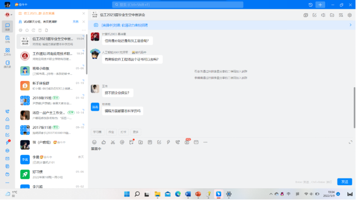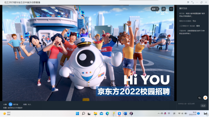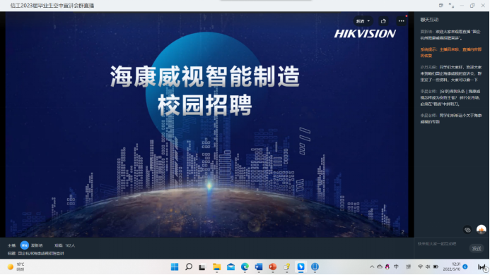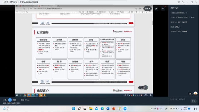 2022年5月9日至5月10日,XCSport邀请软通动力信息技术集团股份有限公司招聘经理刘锦经理、杭州海康威视电子有限公司招聘经理夏新培经理、江苏正力新能电池技术有限公司招聘经理洪经理、健鼎(无锡)电子有限公司招聘经理赵曼经理、南京京东方显示技术有限公司招聘经理裴文栋经理、河南八六三软件股份有限公司招聘经理张银岗经理六家公司的招聘经理通过钉钉直播的方式为同学们进行企业宣讲。