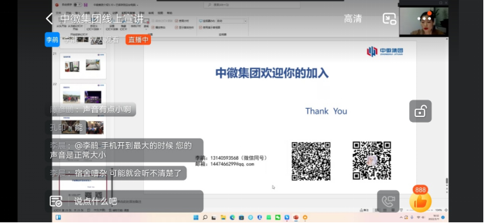 直播开始前,各公司负责人在钉钉群聊里为同学们发放了公司招聘简章、宣传视频、以及公司环境图片,以便同学们能够更加清楚地了解公司情况。会上,各企业经理为大家介绍了企业文化、岗位需求、人员发展前景,以及公司的招聘模式流程。让同学们快速、准确地了解到了企业招聘信息和就业方向等;接着公司同学们积极将自身所遇到的问题积极向企业负责人发出提问,各位企业的招聘经理耐心地一一为同学们解答,同学们热情高涨,此次空中宣讲会反响良好。