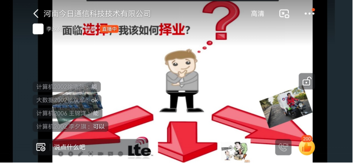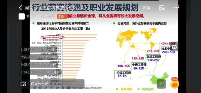 在三家企业招聘经理精彩宣讲的同时,同学们认真听讲,积极回应,就直播宣讲中不明白的问题提出疑问,企业招聘经理也为员工耐心解答,让公司员工对三家企业也有了较为详细的了解,空中宣讲会打破了传统时间和空间的限制,为员工顺利就业提供了一份强有力的保障。