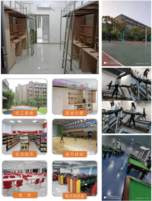娱乐设施:公司拥有完善的职工生活区,配有超市、食堂、篮球场、足球场、羽毛球场、乒乓球室、健身房、网咖、员工活动中心等活动设施