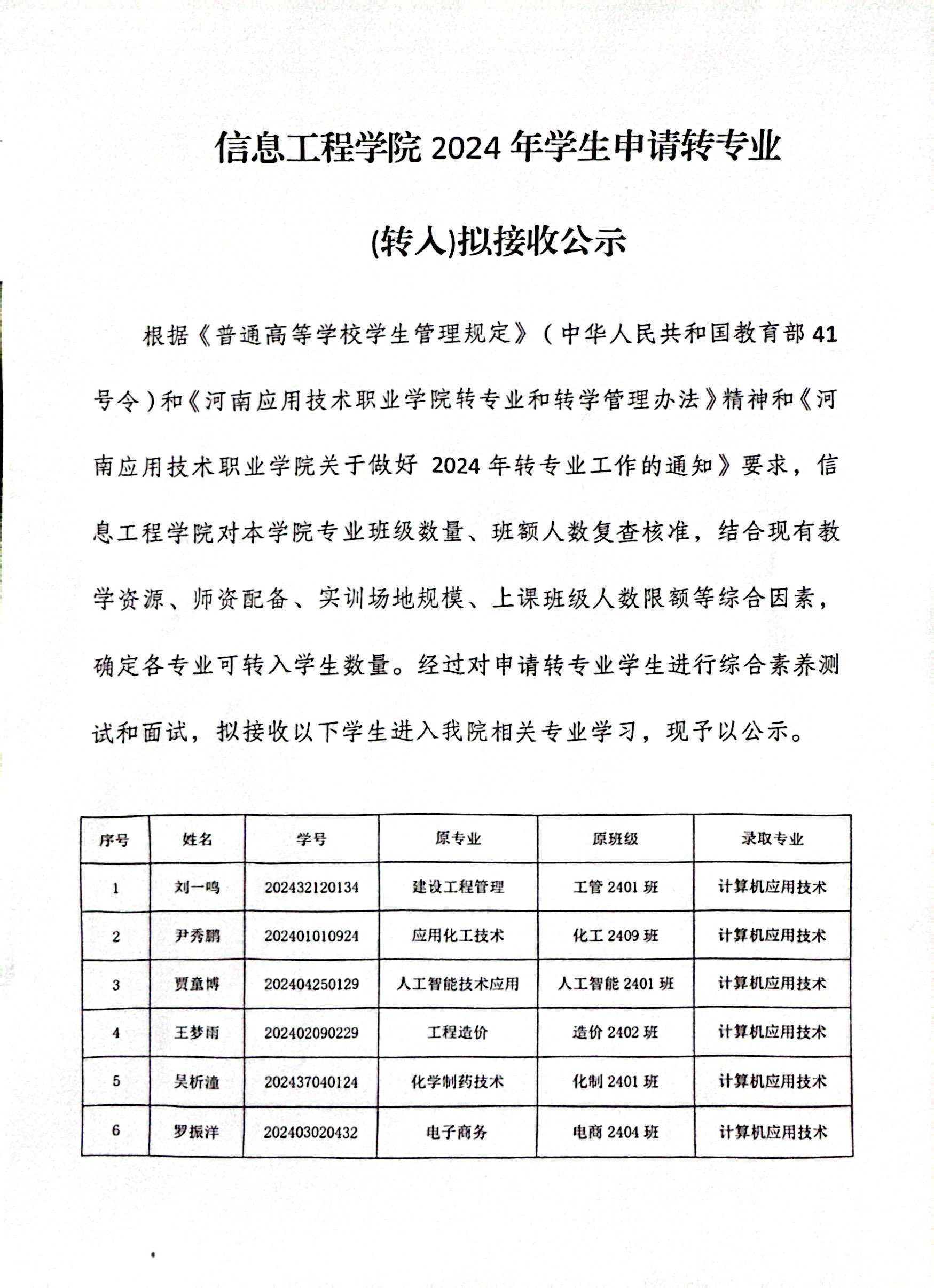 XCSport2024年员工申请转专业(转入)拟接收公示